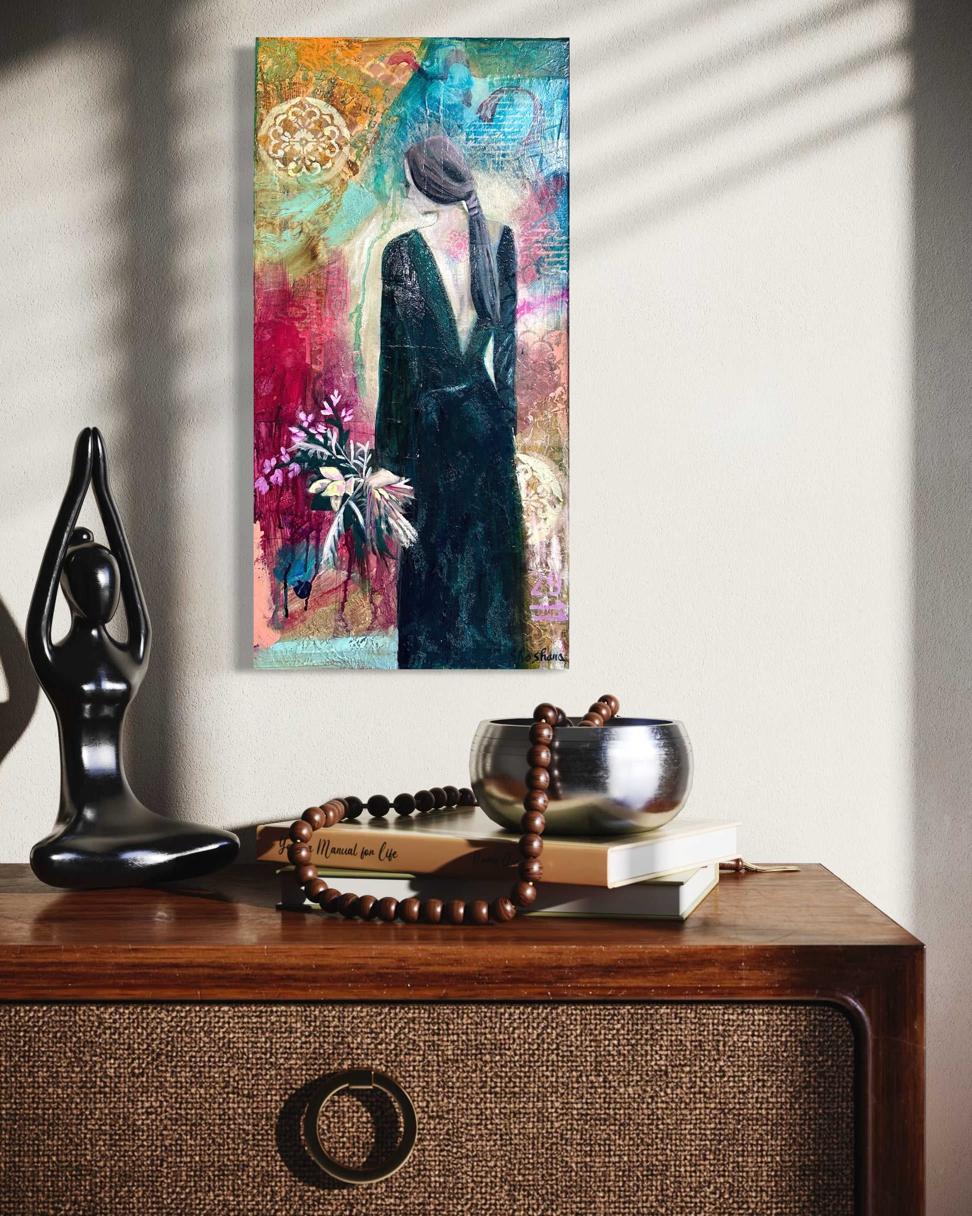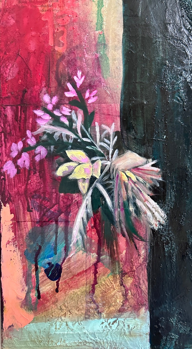 This verse speaks to transformation, grace, and renewal—just as the woman in the painting seems to carry both sorrow and hope with quiet strength. When I created this piece, I was thinking about my life and haw it has been changed over the years and how much I depend on God's grace to get me through.